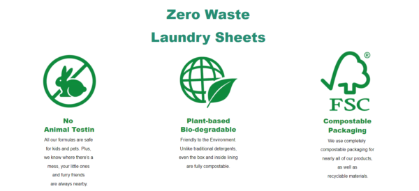 Zero Waste – BunJoin laundry tablets degrade 99% in 7 days. Plastic free, FSC biodegradable paper packaging, tablets dissolve using water in the washing machine.